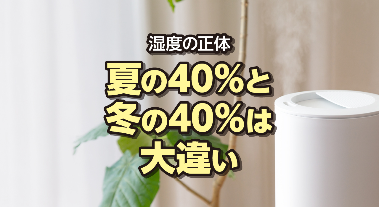 つまり、気温の違う「夏の湿度40%」と「冬の湿度40%」では、含まれている水分量が全く異なります。